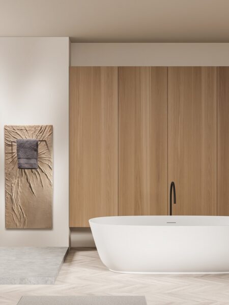 Płytowe grzejniki łazienkowe Cinier to połączenie nowoczesnej estetyki i funkcjonalności. Wykonane z kamienia Olycale®, oferują równomierne promieniowanie ciepła, wysoką wydajność i elegancki wygląd. Idealne do stylowych, minimalistycznych łazienek.
